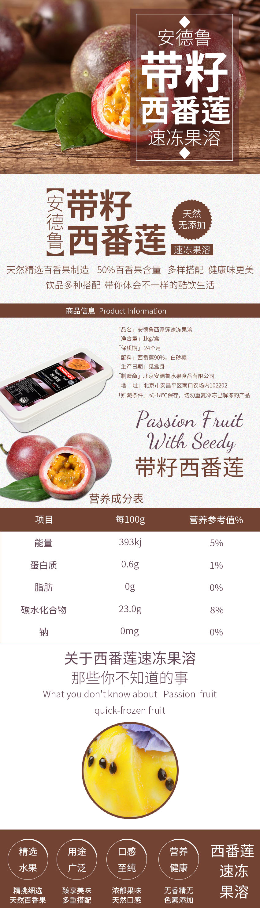 带籽西番莲速冻果溶1kg